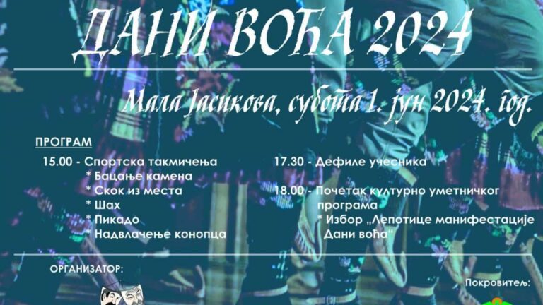 У суботу 1. јуна, у Малој Јасикови код Зајечара биће одржана манифестација „Дани воћа“. У питању је манифестација традиционалног народног стваралаштва, која се одржава по други пут. Дефиле почиње у…